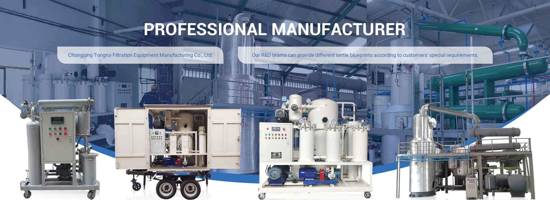 Mae ein cwmni'n ymwneud ag ymchwilio a gweithgynhyrchu purifiers olew dros 20 mlynedd, sy'n wneuthurwr proffesiynol ac enw da iawn gyda thechnolegau unigryw a phrofiad cyfoethog mewn offer ailgylchu olew. Hyd yn hyn, mae'r cwmni wedi cael dwsinau o batentau, a'r holl gynhyrchion a weithgynhyrchwyd cadarnhau i safonau rhyngwladol o ran ansawdd ac effeithlonrwydd gyda thystysgrifau ISO 9001:2015 a CE certificates.Dedicated i reoli ansawdd llym a gwasanaeth cwsmeriaid meddylgar, ein cynnyrch yn cael ei allforio i fwy na 30 o wledydd a rhanbarthau gartref a thramor.